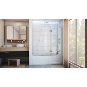 New ๐ DreamLine Aqua 48 in. Frameless Hinged Tub and Shower Door with Clear Tempered Glass in Polished Chrome โค๏ธ
