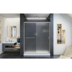 Best Pirce ⌛ DreamLine Infinity-Z 60 in. Frameless Sliding Shower Door with Frosted Glass in Brushed Nickel ✨